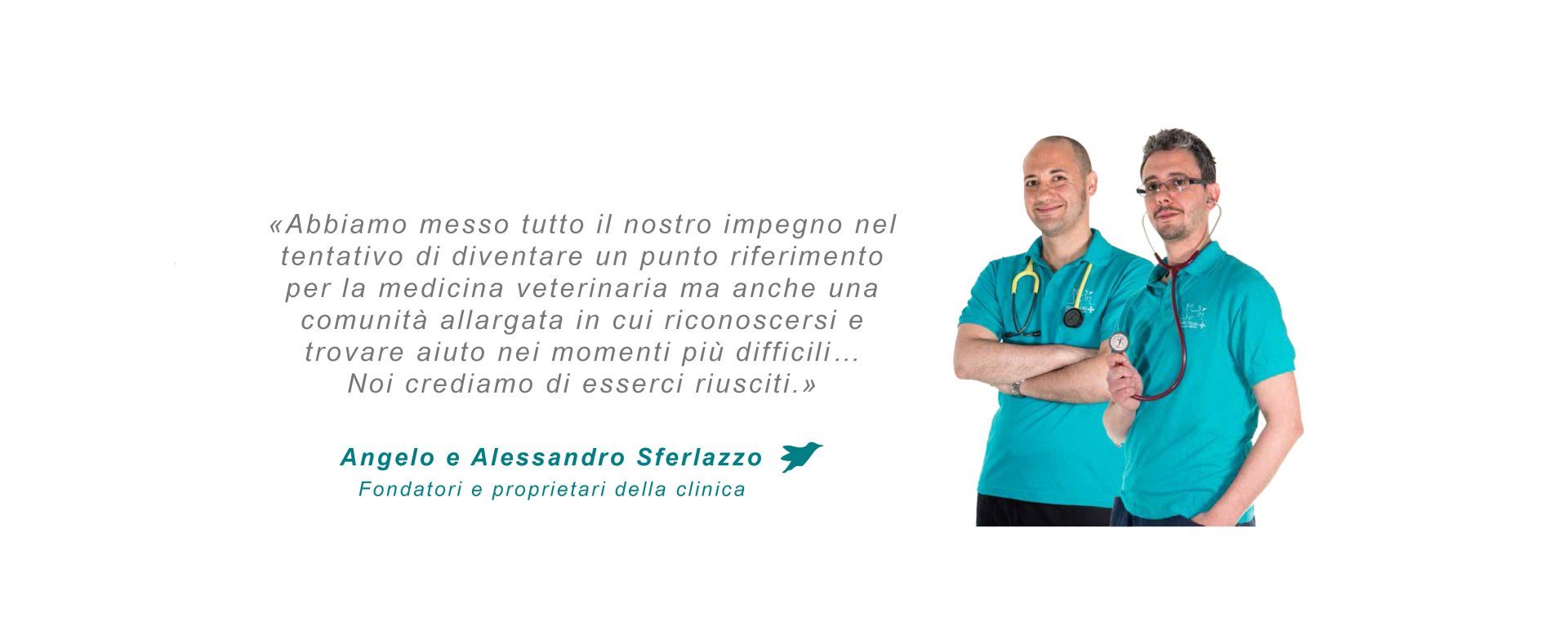 Angelo e Alessandro Sferlazzo inaugurano l’Ambulatorio Veterinario San Paolo. Sono ormai professionisti maturi, alle loro spalle ci sono anni di studi e di esperienze professionali, hanno scelto per l’ambulatorio il nome di quel quartiere in cui sorge con l’obiettivo di trasformare la loro passione di bambini per il mondo degli animali in un lavoro e in una scommessa sul futuro.