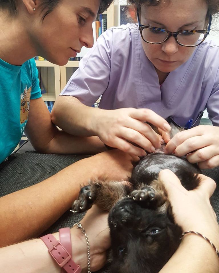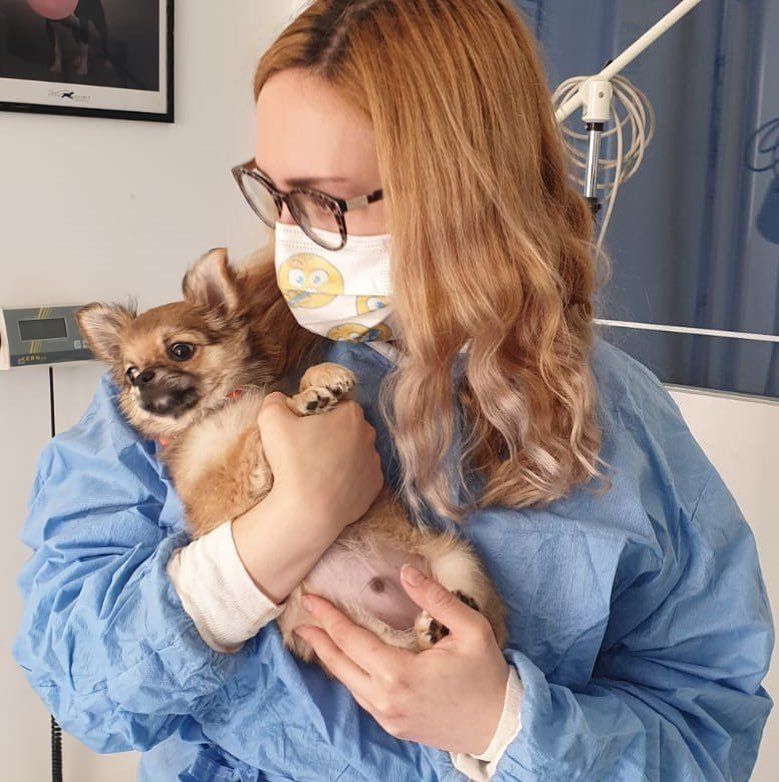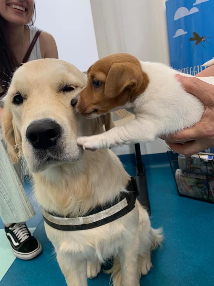 Una cliente con una cucciolata da sottoporre al terzo vaccino pochi giorni prima di Natale, e una richiesta: pubblicare un annuncio per far adottare l’unica a non aver ancora trovato famiglia. Una decisione improvvisa: Angelo la tiene con sè. Così Belle diventa parte della famiglia. Oggi tutti i nostri clienti la conoscono; passa parte della sua giornata in segreteria e alterna dormite, sgambate e festosi saluti a pazienti e persone. Ormai il suo apporto di mascotte è per tutti fondamentale.